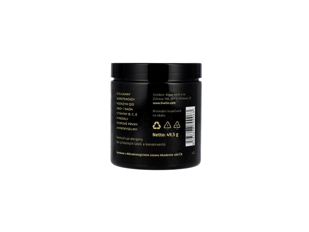 Doplněk stravy LiveLin® LongLife je vyroben čistě přírodním biotechnologickým fermentačním procesem, při němž se využívají ušlechtilé kvasinky k produkci účinných látek nezbytných pro dlouhověkost a trvalé zdraví. Produkt neobsahuje žádné přídatné látky, barviva, ochucovadla ani stabilizátory.