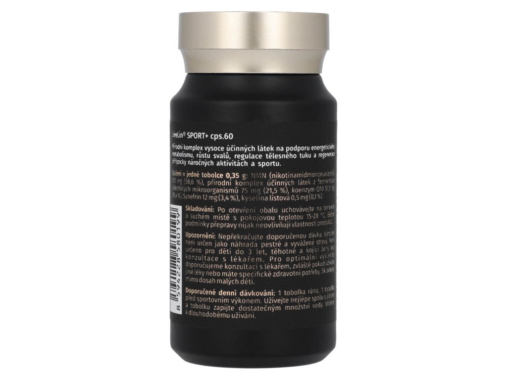 LiveLin® Sport+ je prémiový doplněk stravy v kapslích, vyvinutý pro aktivní jedince a sportovce, kteří chtějí posunout své hranice výkonnosti organismu a regenerace. Kombinace nejmodernějších zcela přírodních látek podporujících energetický metabolismus, vitalitu a fyzickou odolnost. Obsahuje LiveLin® unikátní mikronizovanou biomasu, vyrobenou biotechnologickým fermentačním procesem, při němž se využívají ušlechtilé mikroorganismy k produkci účinných látek nezbytných pro trvalé zdraví a dlouhověkost. Produkt neobsahuje žádné přídatné látky, barviva, ochucovadla ani stabilizátory.